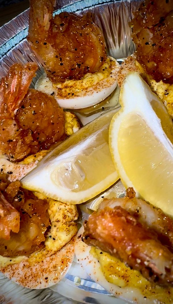 Hot Honey Lemon Pepper Shrimp Deviled Eggs (6pc)